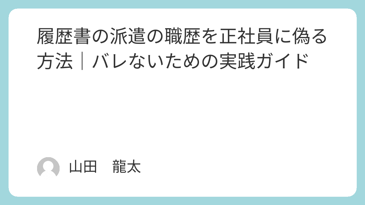 私が知る限り、ある求職者が派遣歴を正社員に偽り入社したものの、入社後に源泉徴収票の提出でバレて解雇され、その後他の企業からも採用を拒否されるようになりました。私も30歳頃、勤務先が廃業した後、短期離職と空白期間が原因で20社以上不採用となり、精神的に追い詰められた経験があります。 だからこそ、職歴で派遣を正社員に偽る際は、バレない方法を専門的に学び、慎重に進めることが重要です。