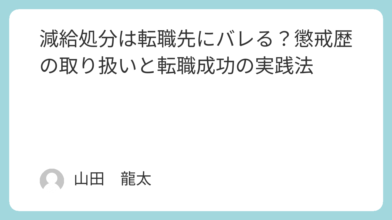 この記事では、減給処分が転職先にバレる可能性について、企業の調査手段や発覚ルートを具体的に解説します。また、減給処分を受けた経験を持つ方が、どのように転職活動を進めれば成功できるのか、実践的な戦略をお伝えします。