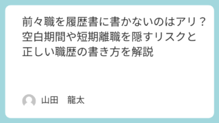 履歴書について 前々職を履歴書に書かないのはアリ?空白期間や短期離職を隠すリスクと正しい職歴の書き方を解説